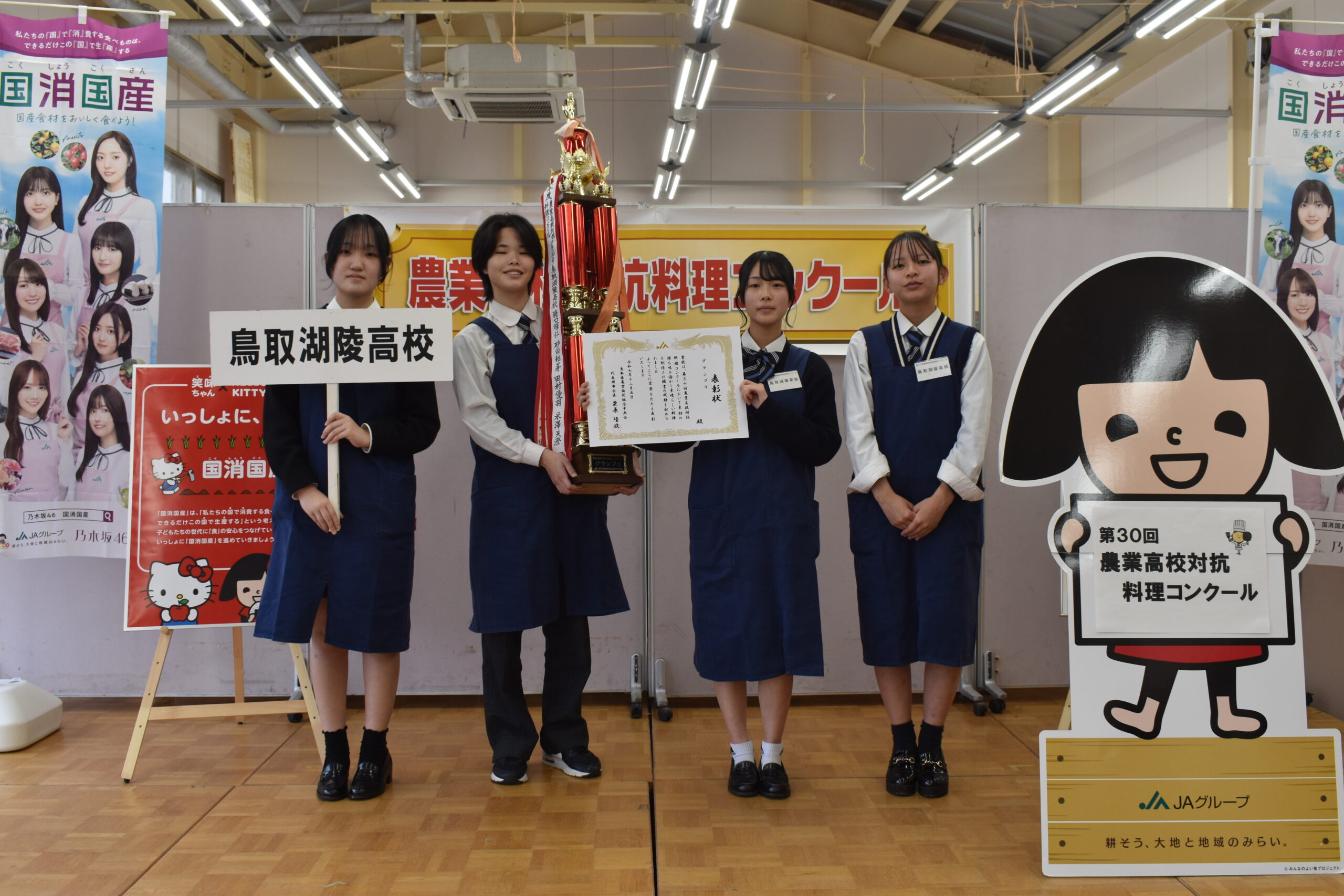 JA鳥取県中央会と県農業・農協教育研究協議会は5日、鳥取市の地場産プラザわったいなに隣接する「とりっこ広場」で第30回農業高校対抗料理コンクールを開き、審査の結果、鳥取湖陵高校が2年連続のグランプリに輝きました。