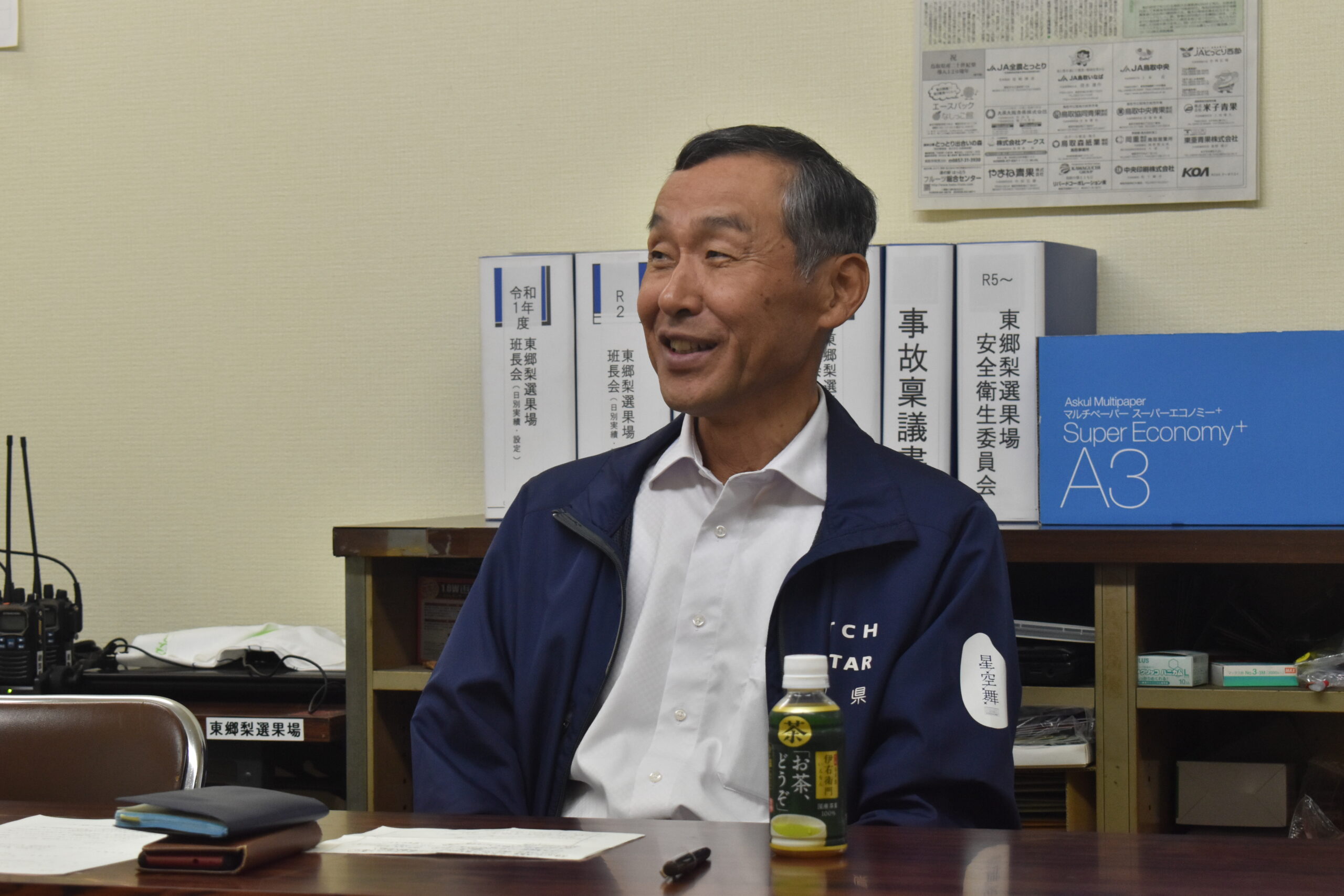 梨生産者であるJA鳥取中央東郷果実部の山下直起さんと同JA長芋生産部の竹本健二部会長に農家の喜びや苦労、消費者への感謝の気持ち、行政等への要望についてインタビューしました。